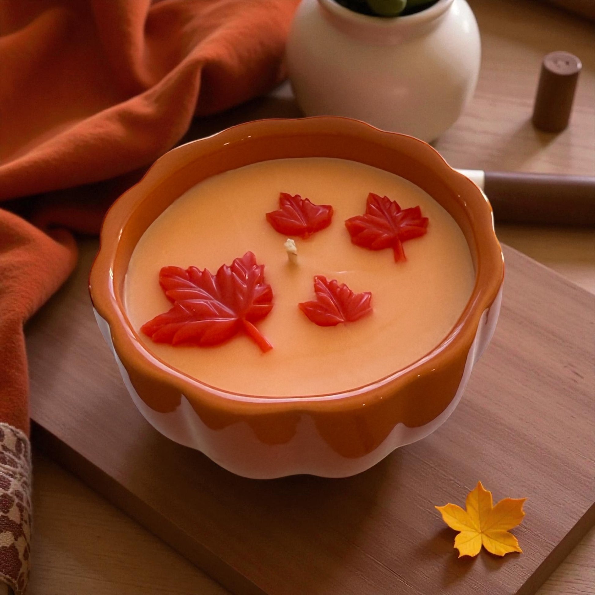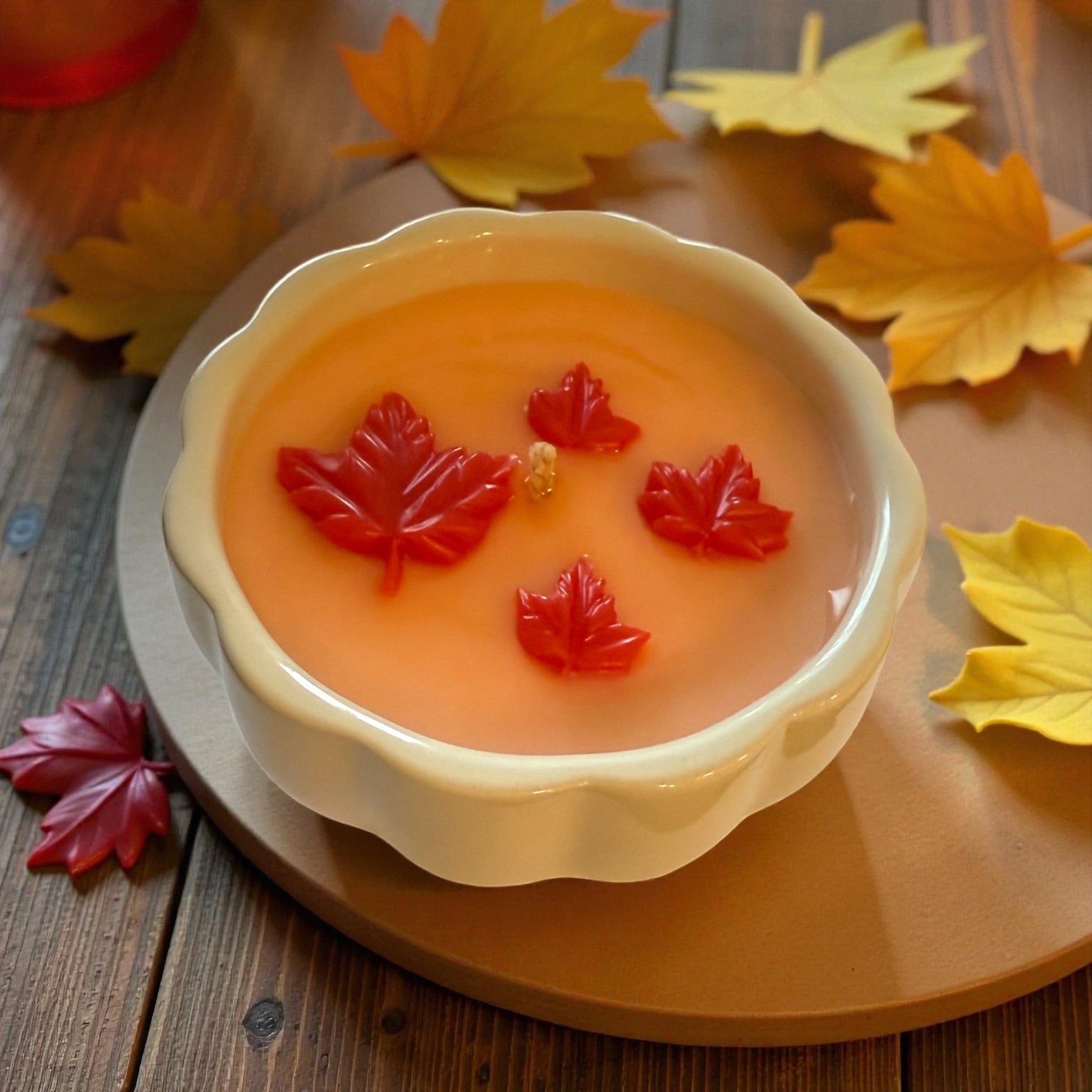 A single flame brings the rich, earthy aromas of the season indoors, mingling scents of spiced pumpkin, warm apple cider, and cinnamon. The comforting fragrance evokes a sense of nostalgia, like stepping into a rustic cabin where baked goods simmer and a fire crackles softly in the distance.
